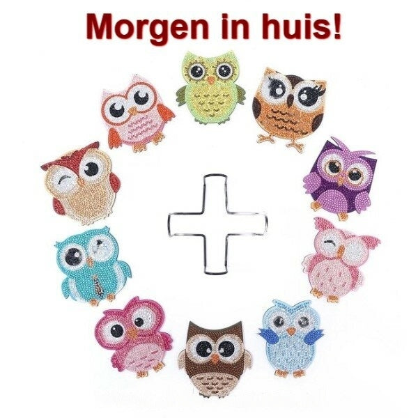 Ontdek de Prachtige Diamond Painting Onderzetters  Uiltjes (10 stuks)